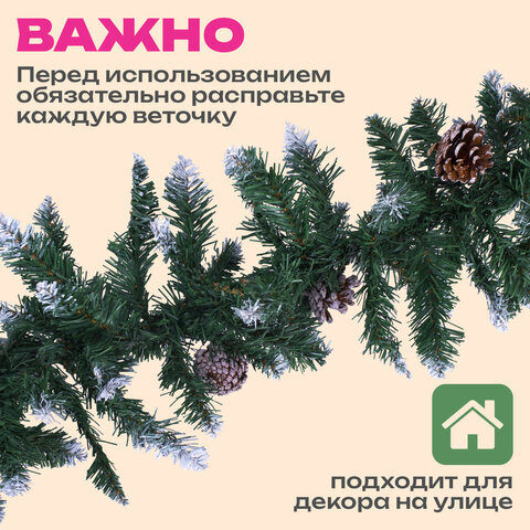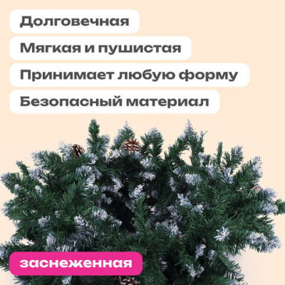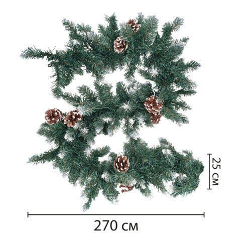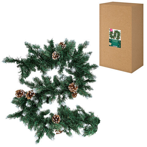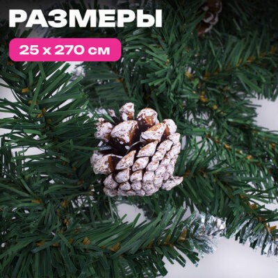 Гирлянда хвойная заснеженная с шишками, длина 270 см, диаметр 25 см, ЗОЛОТАЯ СКАЗКА, 592185