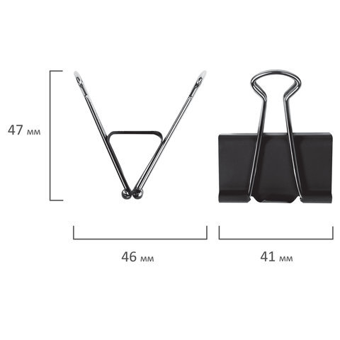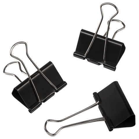 Зажимы для бумаг STAFF" EVERYDAY", КОМПЛЕКТ 12 шт., 41 мм, 200 листов, черные, картонная коробка, 224609