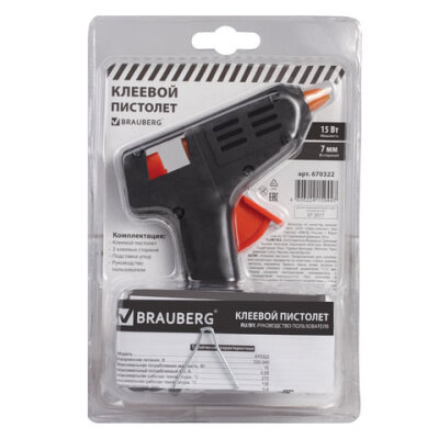 Клеевой пистолет 15 Вт, для стержня 7 мм, BRAUBERG, в блистере, 670322