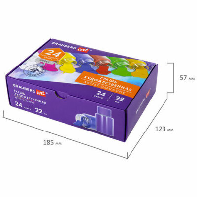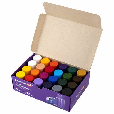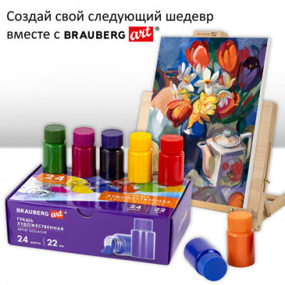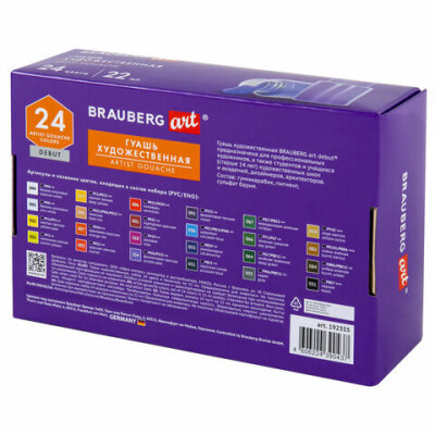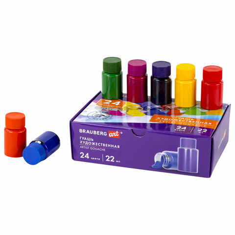 Гуашь художественная НАБОР 24 цвета по 22 мл, с гуммиарабиком, BRAUBERG ART DEBUT, 192355