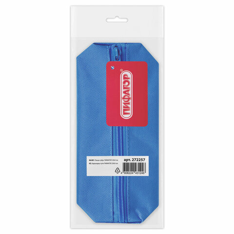 Пенал-тубус ПИФАГОР на молнии, ткань, синий, 20х5 см, 272257
