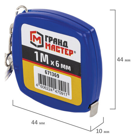 Рулетка-брелок 1 м х 6 мм, пластиковый корпус, ГРАНДМАСТЕР, 671369