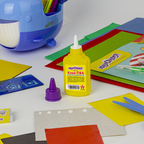 Клей ПВА ЮНЛАНДИЯ предназначен для склеивания изделий из бумаги, картона, а также подходит для ткани и фотографий. Идеальный выбор для детского творчества.