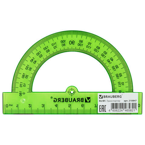 Прозрачный транспортир BRAUBERG предназначен для чертёжных и измерительных работ.