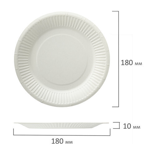 Тарелка одноразовая бумажная 180 мм, КОМПЛЕКТ 100 шт., БЮДЖЕТ, белая мелованная, LAIMA, 608083