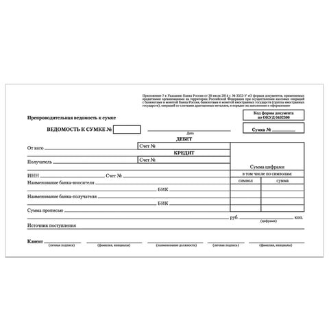 | Вид бланка | Ведомость |