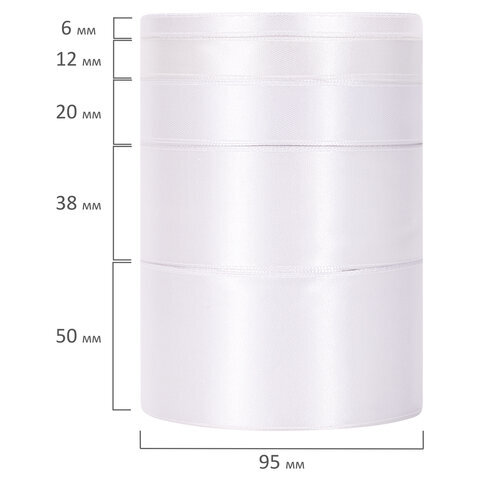 Лента атласная белая набор 5 штук по 23 м шириной 6/12/20/38/50 мм, BRAUBERG, 591488