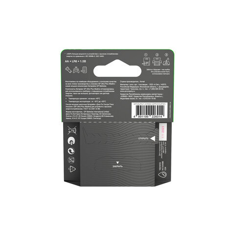 Батарейки КОМПЛЕКТ 4 шт., GP Ultra Plus G-Tech, AA (LR6), алкалиновые, пальчиковые, 15AUPA21-2CRSB4