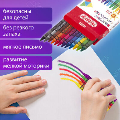 Рисование восковыми мелками ПИФАГОР способствует развитию мелкой моторики рук, воображения и помогает формировать цветовое восприятие. Идеальны для рисования на бумаге любого типа, а также дереве, картоне и стекле.