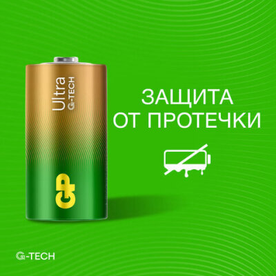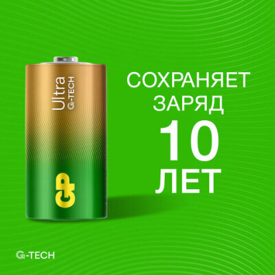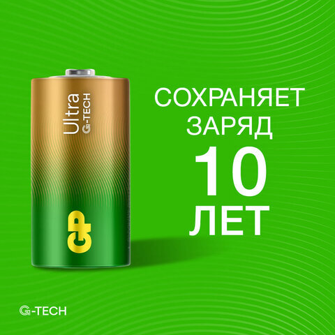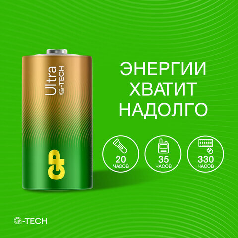 Батарейки КОМПЛЕКТ 2 шт., GP Ultra G-Tech, С (LR14, 14А), алкалиновые, блистер, 14AU-2CR2
