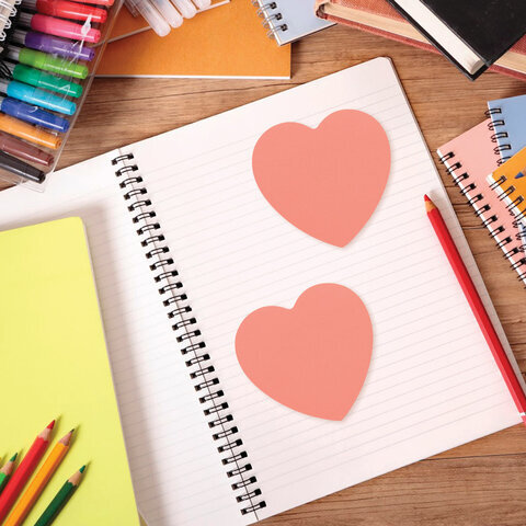 Блок самоклеящийся (стикеры), фигурный BRAUBERG, НЕОНОВЫЙ "Сердце", 50 листов, розовый, европодвес, 122710