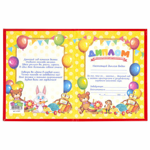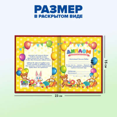 Диплом об окончании детского сада, бумвинил красный, А5 115х150 мм, BRAUBERG, 117577