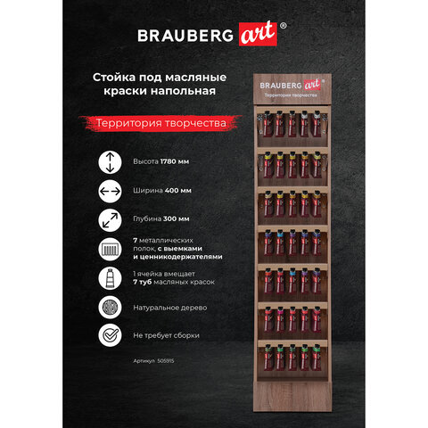 Стильная и вместительная фирменная стойка BRAUBERG ART позволит выгодно разместить масляные краски и повысить объем продаж.