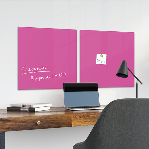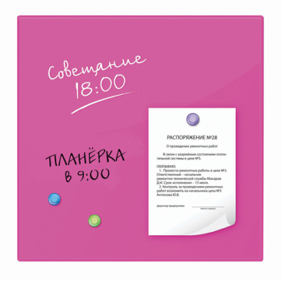 Доска магнитно-маркерная стеклянная 45х45 см, 3 магнита, РОЗОВАЯ, BRAUBERG, 236742