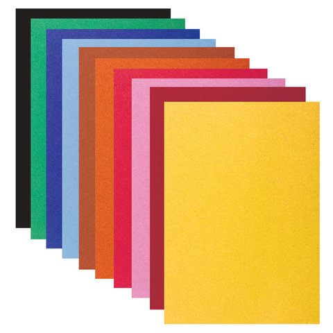 Цветная бумага МАЛОГО ФОРМАТА, А5, БАРХАТНАЯ, 10 листов, 10 цветов, 110 г/м2, ЮНЛАНДИЯ, 129875