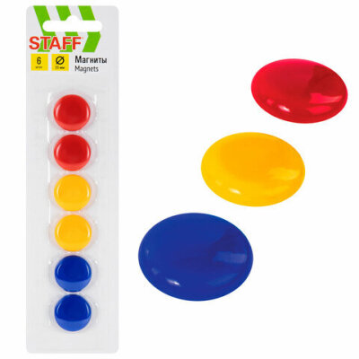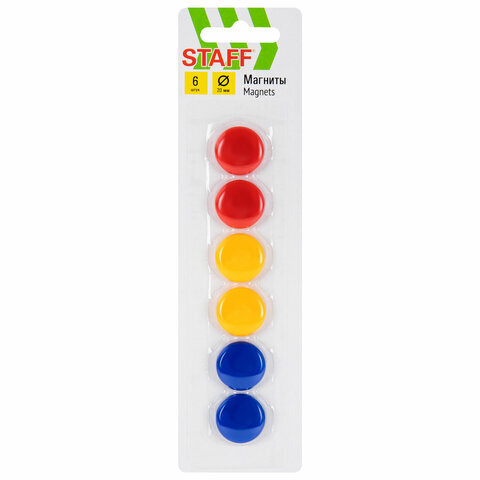 Магниты МАЛОГО ДИАМЕТРА, 20 мм, КОМПЛЕКТ 6 штук, цвет АССОРТИ, в блистере, STAFF "Basic", 236404