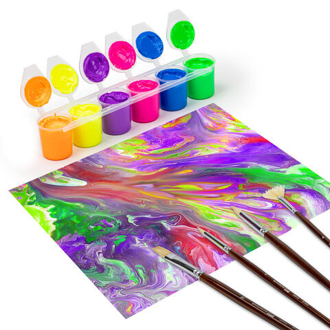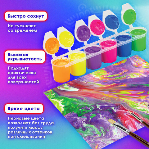 Краски акриловые НЕОН для рисования и хобби ОСТРОВ СОКРОВИЩ 6 цветов по 25 мл, 191692