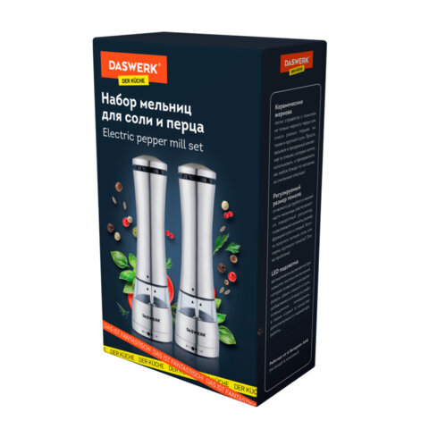 Мельница для специй, НАБОР 2 штуки, электрические, с подсветкой, PM-4, DASWERK (ДАСВЕРК), 456622