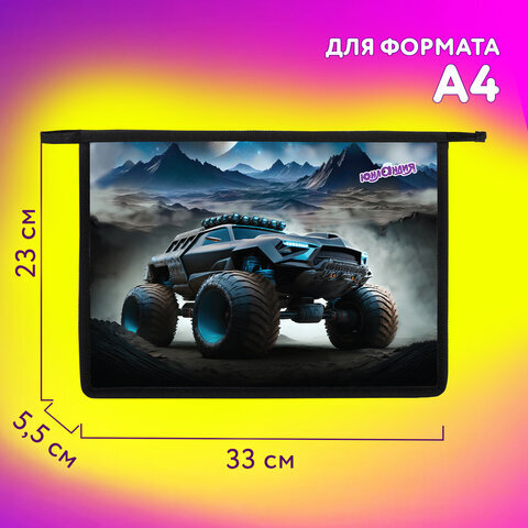 Папка для тетрадей ЮНЛАНДИЯ А4, 1 отделение, пластик, на молнии, "Space driver", 273352