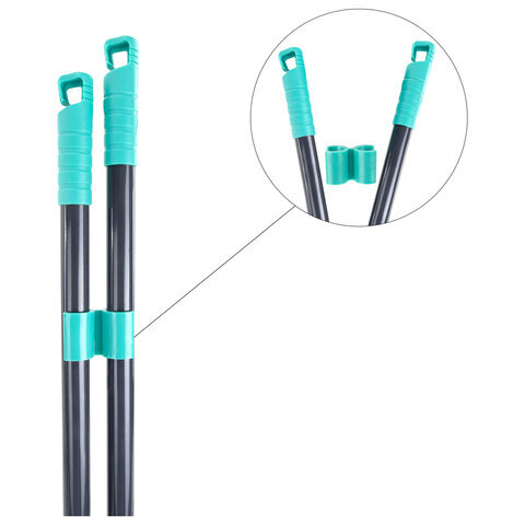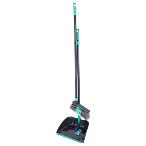Совок для мусора КОМПЛЕКТ щетка + 2 рукоятки 80 см и 83 см с резьбой, пластиковые, "ЛЕНИВКА", бирюзово-серый, LAIMA, 700055