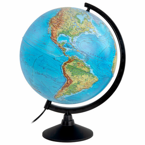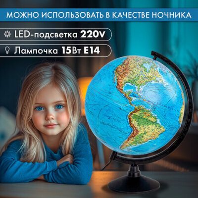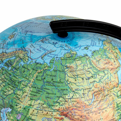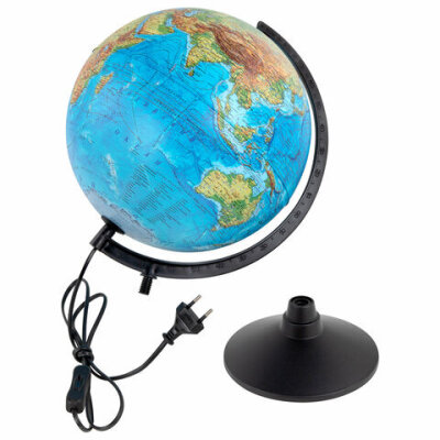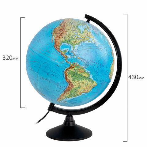 • Глобус позволит ознакомиться с физической и политической картой мира. Подходит для использования в детских садах и школах. Поможет узнать об организационно-правовом (политическом) укладе территорий и рельефе земной поверхности.
