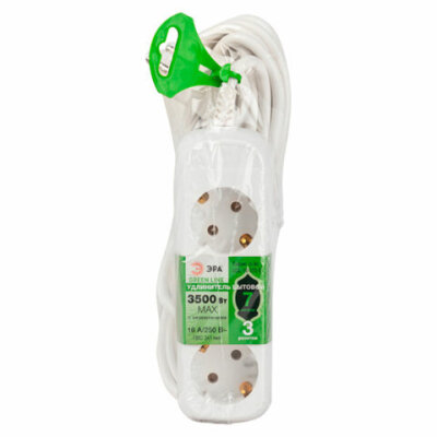 Удлинитель ЭРА UDL-16 Greenline, 3 розетки, с заземлением, 16 А, 7 м, белый, UDL-16-370-E