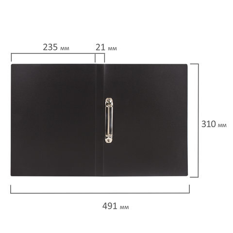 Папка на 2 кольцах BRAUBERG "Office", 21 мм, черная, до 120 листов, 0,5 мм, 221612