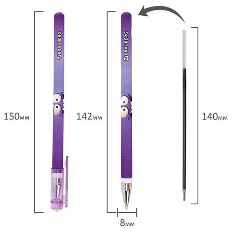 • Ручка шариковая BRAUBERG "МОНСТРИКИ" – универсальный помощник для создания различных заметок и записей, идеально подходит для ежедневного использования.