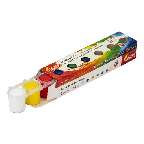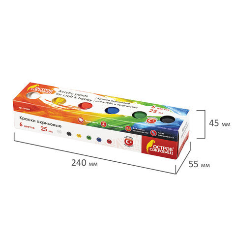 Краски акриловые для рисования и хобби ОСТРОВ СОКРОВИЩ 6 цветов по 25 мл, 191688