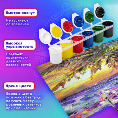 Акриловые краски ОСТРОВ СОКРОВИЩ отлично подойдут для рисования и оформительских работ. Легко наносятся практически на любую поверхность. Обеспечивают быстрое высыхание без изменения цвета.