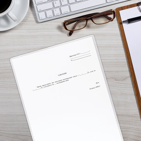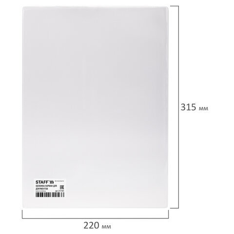 Обложка-карман для документов ФОРМАТА A4 и свидетельства о рождении, ПВХ, прозрачная, STAFF, 237585