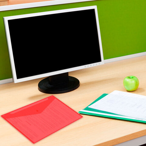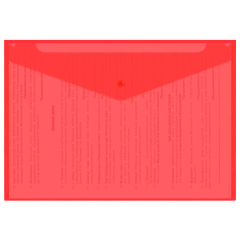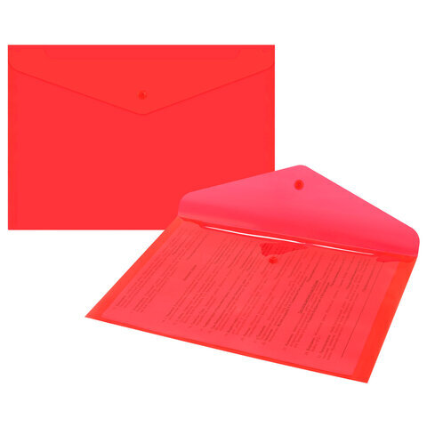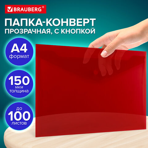 Папка-конверт с кнопкой прозрачная А4, BRAUBERG "UNIVERSAL", до 100 листов, красная, 0,15 мм, 273073