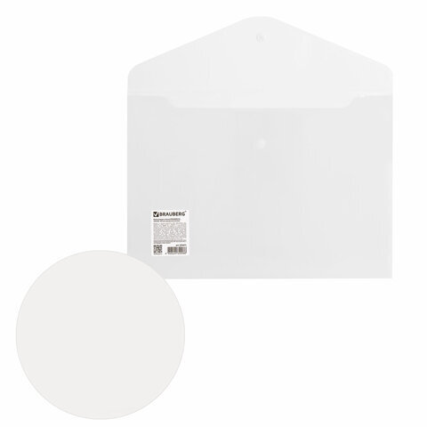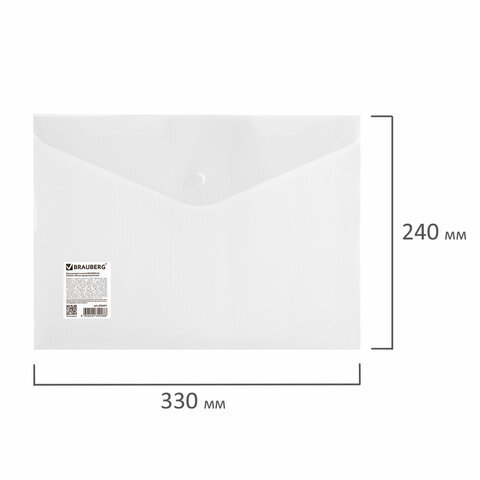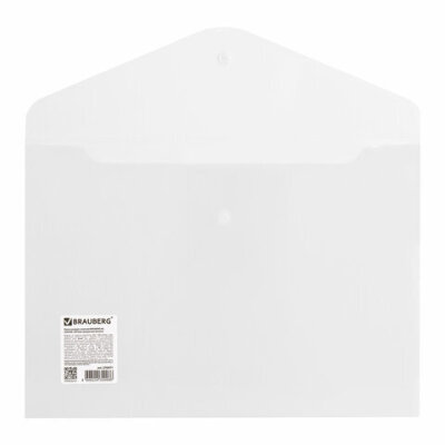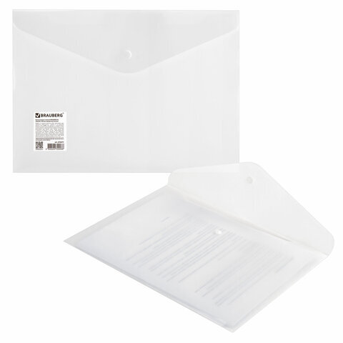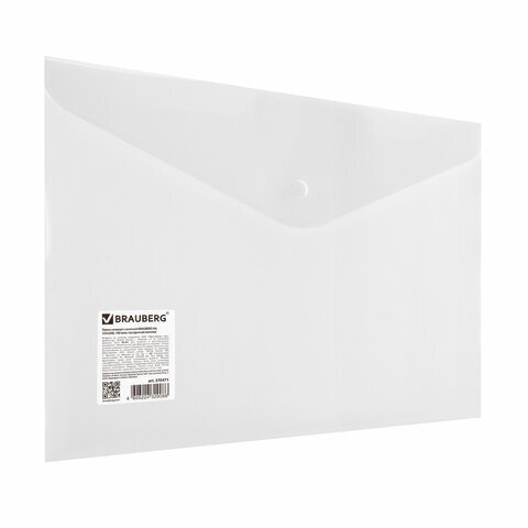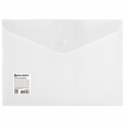 Папка-конверт с кнопкой BRAUBERG А4 до 100 л. матовая прозрачная СВЕРХПРОЧНАЯ 0,18 мм, 270471