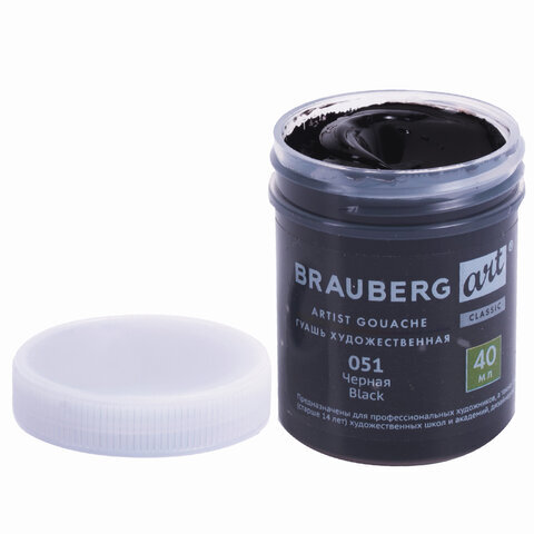 Гуашь художественная 1 шт., BRAUBERG ART CLASSIC, баночка 40 мл, ЧЕРНАЯ, 191568