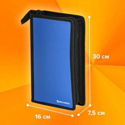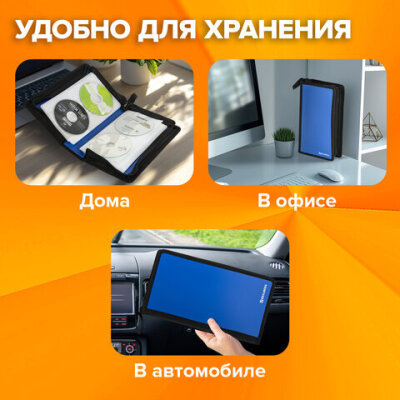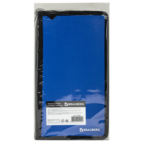 Портмоне для CD/DVD BRAUBERG на 96 дисков, обложка пластиковая, синий, 510091