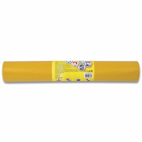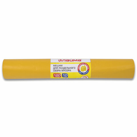 Мешки для раздельного сбора мусора 120 л, желтые, в рулоне 10 шт., ПВД 38 мкм, 70х108 см, LAIMA, 606705, 3842