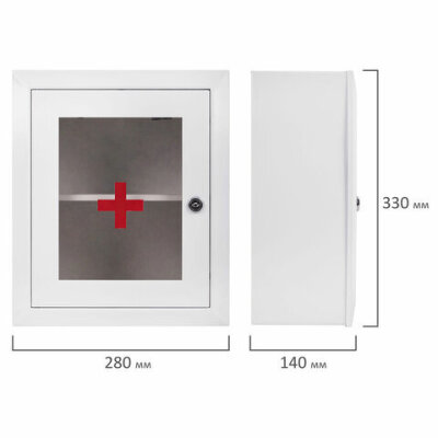 Шкафчик-аптечка металлический, навесной, 1 полка, ключевой замок, стекло, 330x280x140 мм