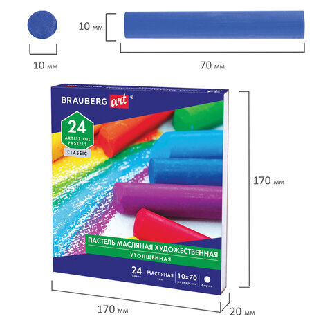 Пастель масляная художественная BRAUBERG ART CLASSIC, УТОЛЩЕННАЯ, 24 цвета, круглое сечение, 181452