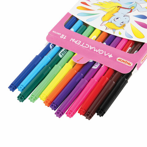 Фломастеры ПИФАГОР "ЕДИНОРОГ", 12 цветов, вентилируемый колпачок, 152448