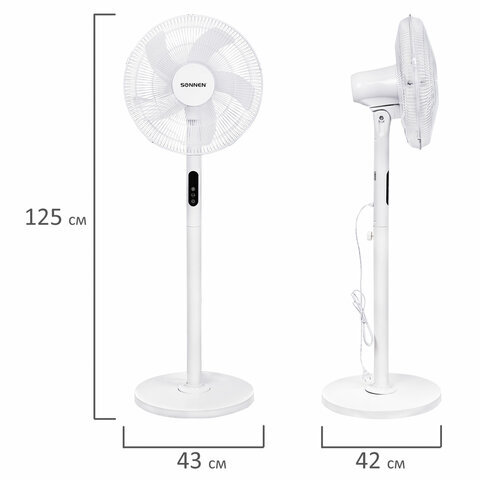 Вентилятор напольный LCD дисплей, пульт ДУ SONNEN FS40-A999, 50 Вт, 3 режима, белый, 455735
