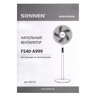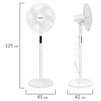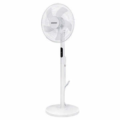 Вентилятор SONNEN FS40-A999 напольного типа привлекает внимание устойчивой конструкцией и классическим белым дизайном элегантного корпуса из металла и пластика.