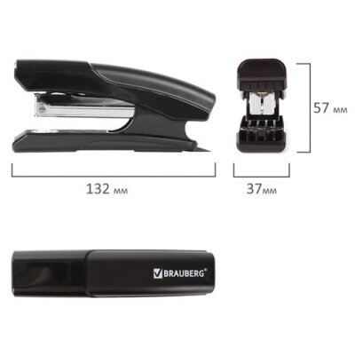 Степлер №24/6, 26/6 BRAUBERG "Black Jack", до 20 листов, антистеплер, черный, 227764