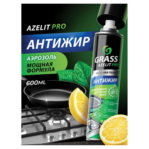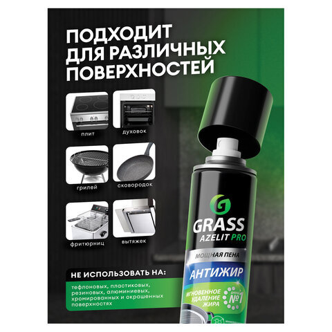 Средство для чистки плит, духовок, грилей от жира/нагара, АЭРОЗОЛЬ 300 мл, GRASS AZELIT, щелочное, 126103