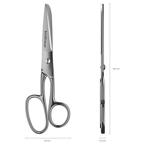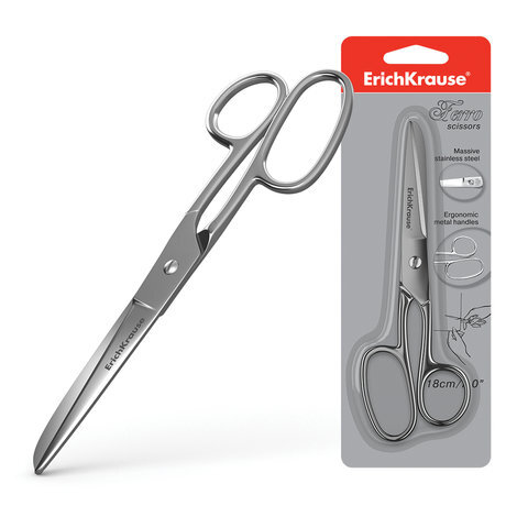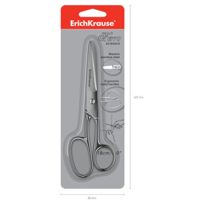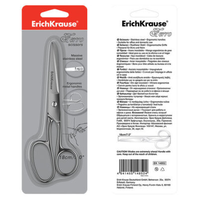 Ножницы ERICH KRAUSE "Ferro", 180 мм, серебристые, в картонной упаковке с европодвесом, 14852