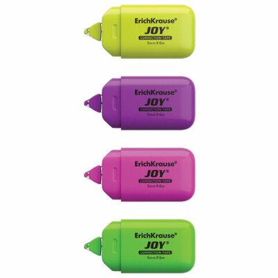 Корректирующая лента ErichKrause "JOY" идеально подходит для аккуратного и быстрого исправления строчного текста. Показывает отличный результат на всех типах и цветах чернил. Создана на основе растворителя.