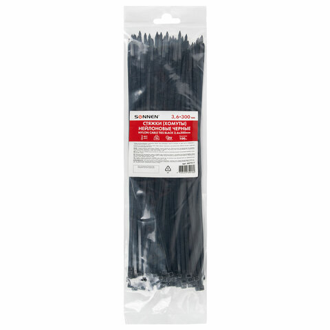 Стяжки (хомуты) нейлоновые SONNEN используются при проведении электромонтажных работ для крепления кабелей, проводов и других предметов к несущей поверхности или для соединения между собой. Такие стяжки также используются для бытовых и хозяйственных нужд.
