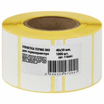 Термоэтикетки ЭКО, 40х30 мм, 1000 этикеток в ролике, 116664