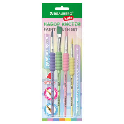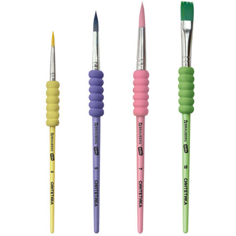 Набор из четырёх кистей разного размера c мягкой EVA-вставкой BRAUBERG KIDS позволяет начинающим художникам решать любые творческие задачи в детском саду, школе и дома.
