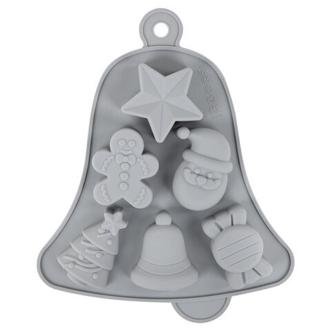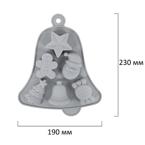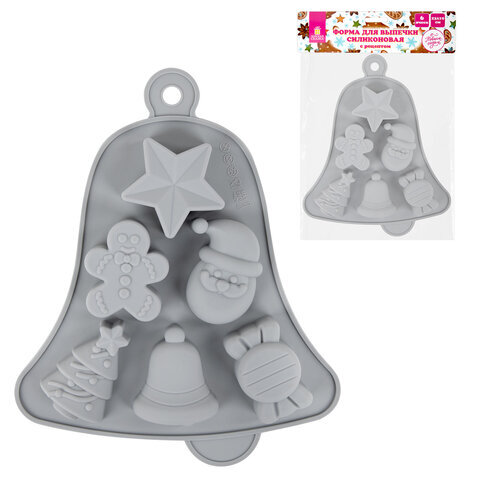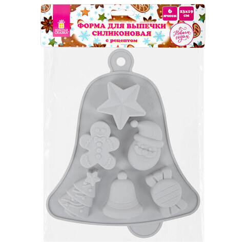 Форма для выпечки новогодняя 23х19 см, "Колокольчик", силикон, 6 ячеек, рецепт, ЗОЛОТАЯ СКАЗКА, 592469