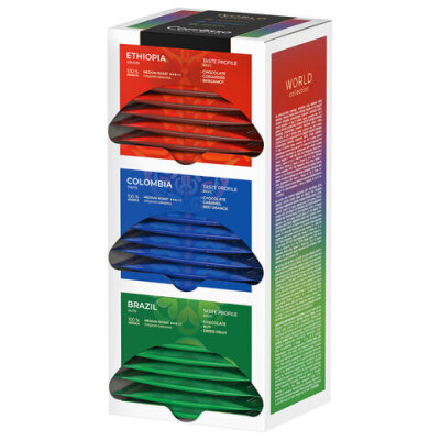 Ассорти моносортов Бразилии, Колумбии и Эфиопии в дрип-пакетах.